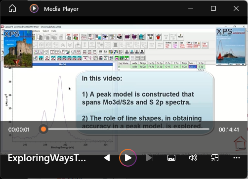 View Video No. 24 of 32Chemical state information about an atom is often obtained by constructing a model for a photoemission spectrum, constructed using component peaks, representing different elements and/or chemical state of an element, then fitting the peak model to data for which a background curve has been removed. The video discussing concepts associated with fitting peak models to data, providing an introduction to those people new to XPS.